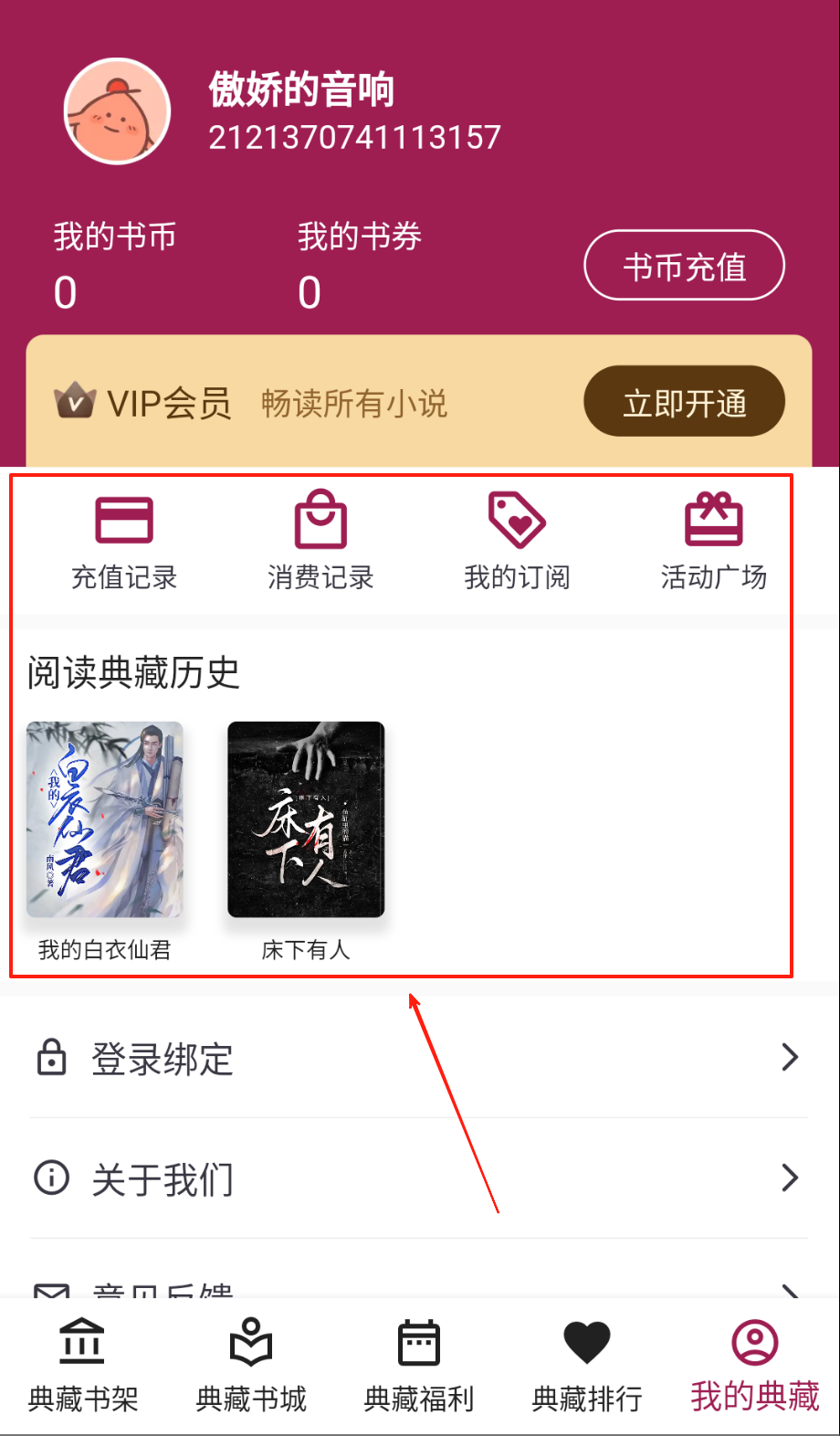 3、每日签到积累积分兑换特权功能,查阅阅读记录重温内容,关注榜单发现新书。