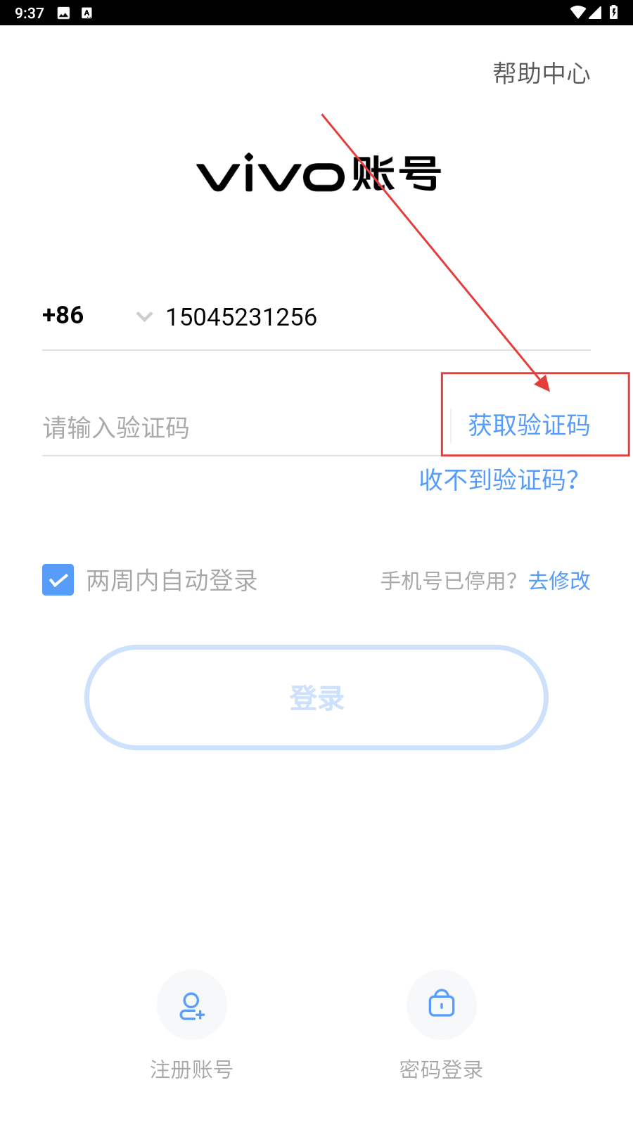 2、填写好后,点击【获取验证码】。