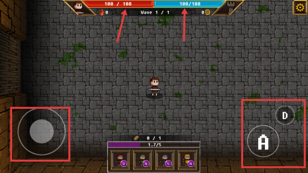 2、在战斗场景中,注意屏幕上方双方的【生命值条】,左下角虚拟摇杆控制角色移动,右下角按键用于攻击等操作。
