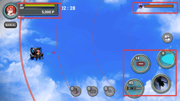 3、战斗中关注屏幕上方的【HP】和【EXP】条,以及敌人生命值条,利用屏幕下方的技能按钮释放技能攻击敌人,合理规划技能释放时机。