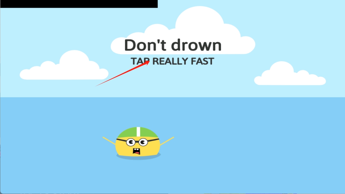 2、接着,遵循“Don't drown, TAP REALLY FAST”提示,快速点击屏幕避免角色溺水。