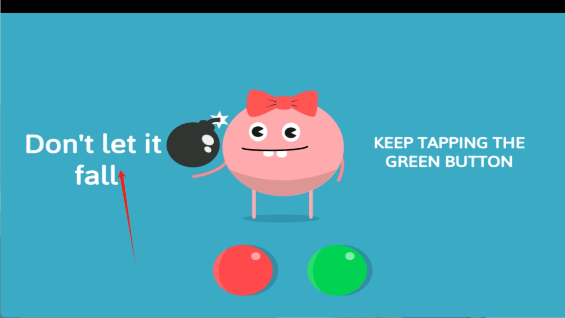 3、最后,根据“Don't let it fall, KEEP TAPPING THE GREEN BUTTON”指导,持续点击绿色按钮确保角色安全。