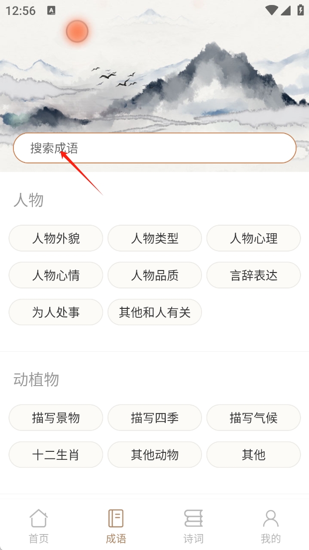 2、在成语分类页面,通过搜索框查找特定成语,或按类别浏览成语列表。