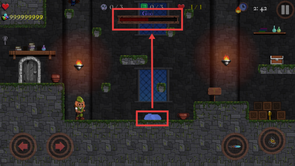 2、注意场景交互:遇到类似“Goo”的物体时,留意上方进度条,可能需要通过攻击或其他操作来处理,避免受到负面影响。