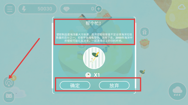 2、遇到“帮个忙!”的任务提示,考虑接受(点击“确定”)清理饮料杯任务,这不仅能助力环保主题目标,还可能获得奖励,推动游戏进程。