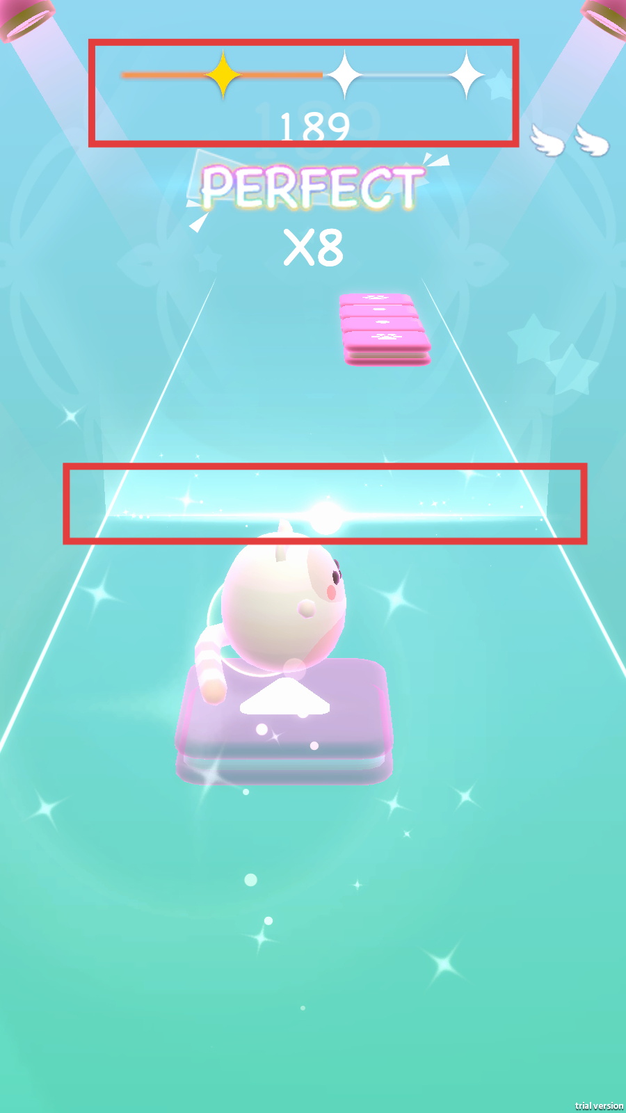 2、游戏过程中,留意上方进度条和分数(如189),尽量精准操作,追求“PERFECT”判定,以获取更高分数和奖励倍数。