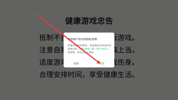 1、进入游戏,点击【同意】。