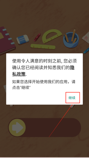 1、同意隐私政策:在游戏开始前,阅读并同意隐私政策,点击“继续”按钮以接受条款并开始游戏。