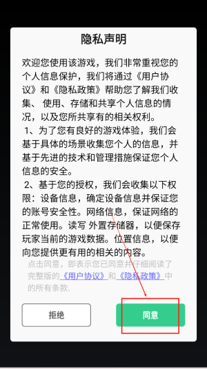 1、同意隐私声明:在游戏启动界面,阅读隐私声明后点击“同意”按钮,以接受条款并继续。