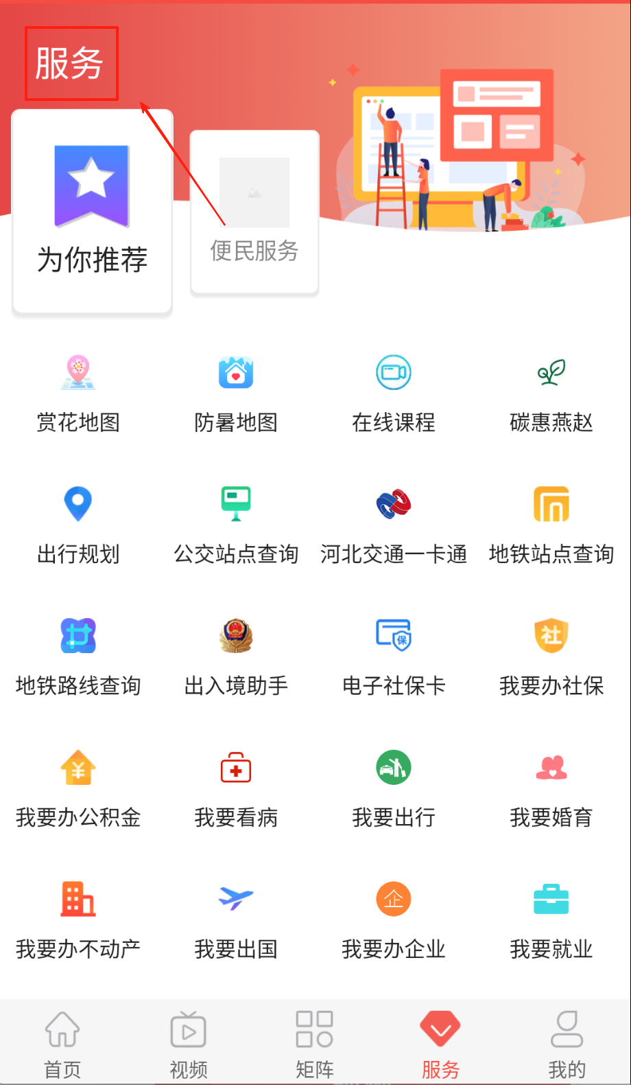 3、在服务板块办理生活事务或参与问政互动,视听专区可点播音视频内容。