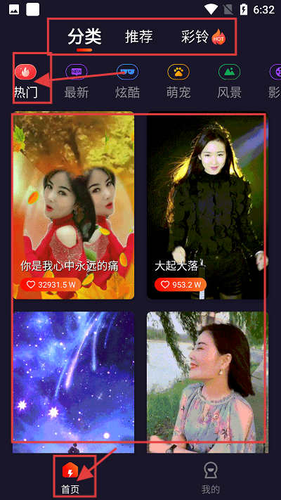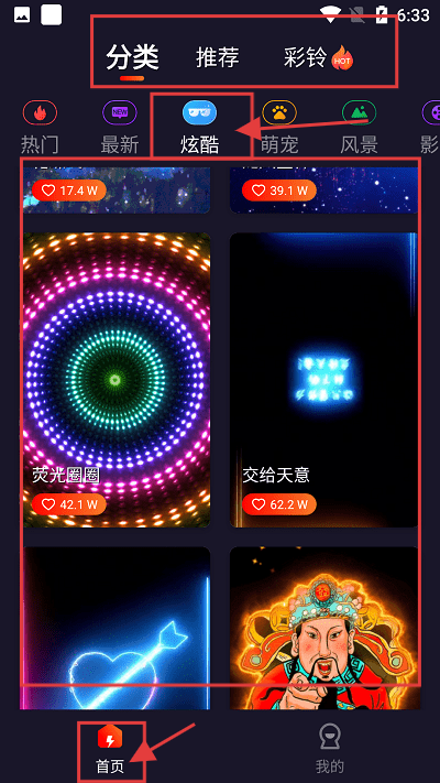 1、打开应用,在首页点击【分类】有很多热门推荐来电秀可以选择。