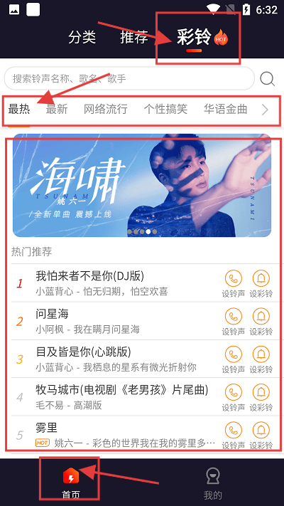 3、点击上方【彩铃】还有超多音乐可以设置。