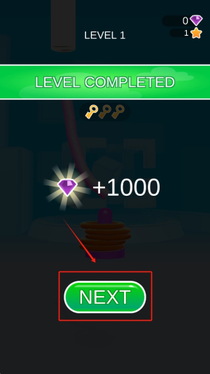 3、完成关卡并晋级:在完成当前关卡后,点击“NEXT”按钮,领取奖励并进入下一关卡继续游戏。