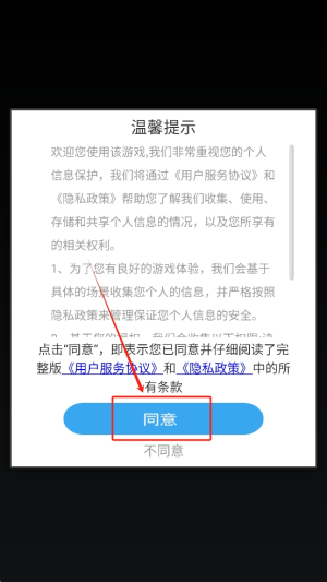 1、同意游戏条款:在游戏开始前,阅读并同意用户协议和隐私政策,点击“同意”按钮以接受条款并开始游戏。