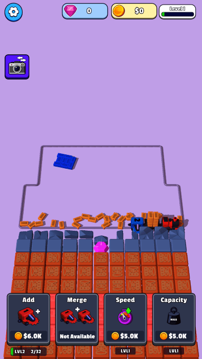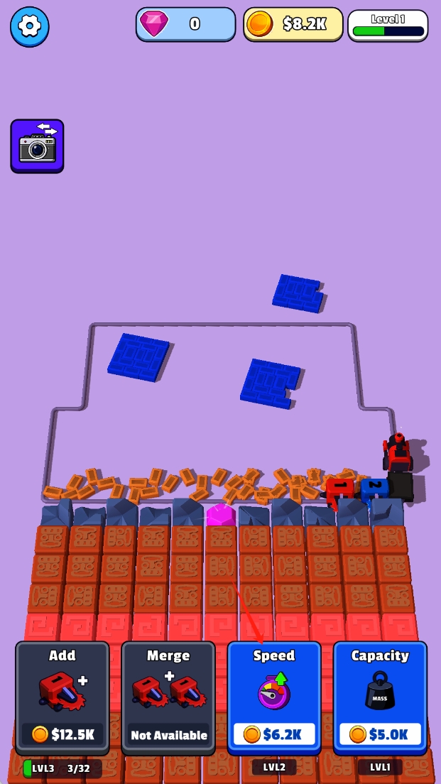 3、提升车辆速度和容量。点击“Speed”和“Capacity”按钮,分别提高车辆的破坏速度和携带能力,优化游戏体验。