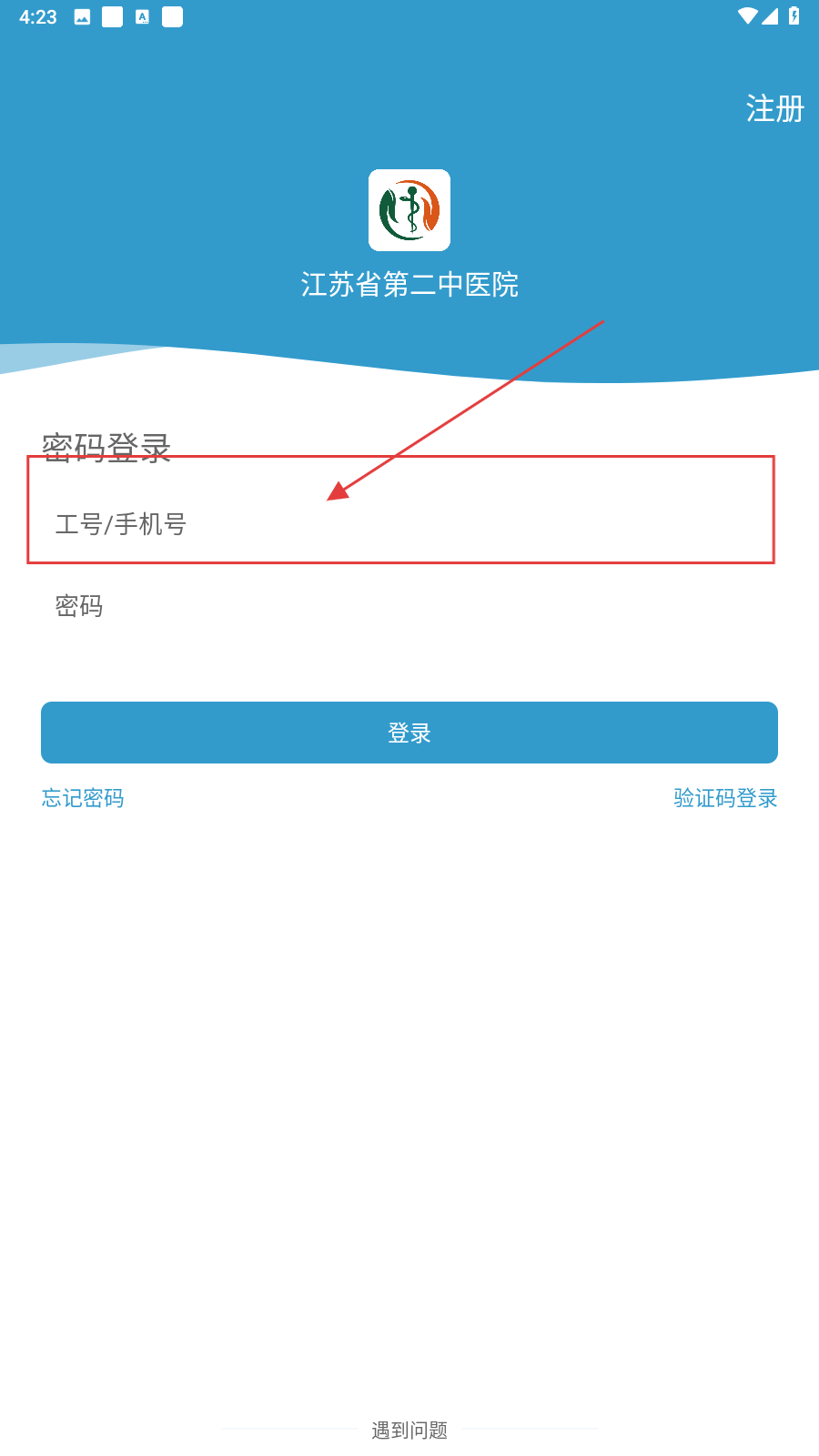 1、打开应用的登录界面,在“工号/手机号”输入框中输入手机号码。
