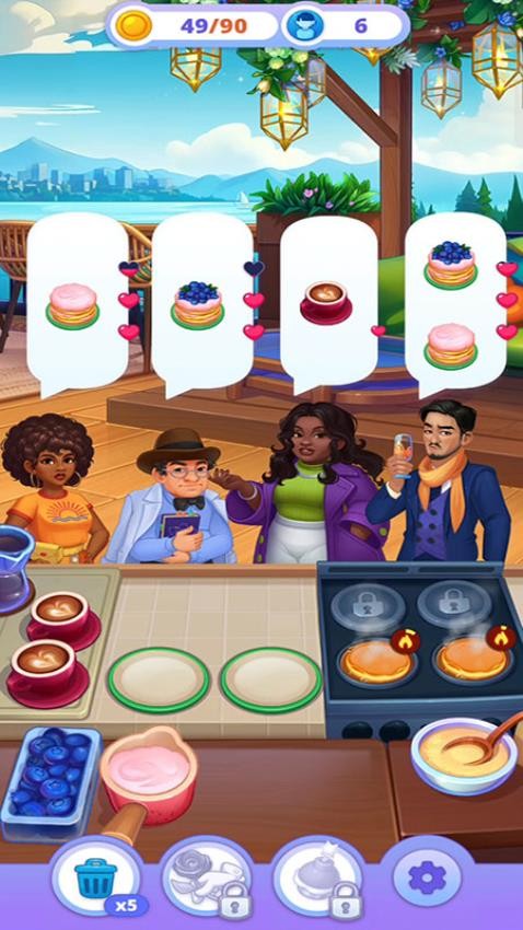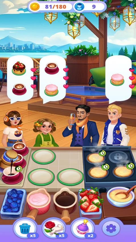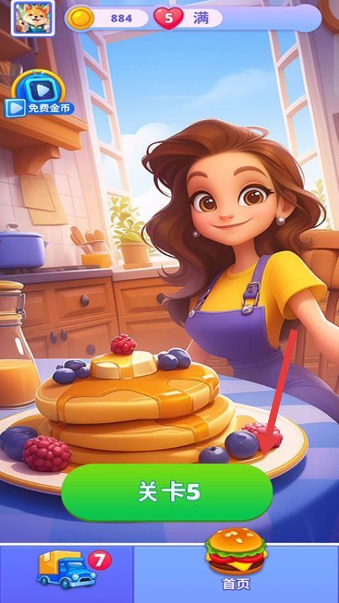 1、点击【关卡5】进入游戏,利用初始金币和道具,准备制作顾客所需的美食。