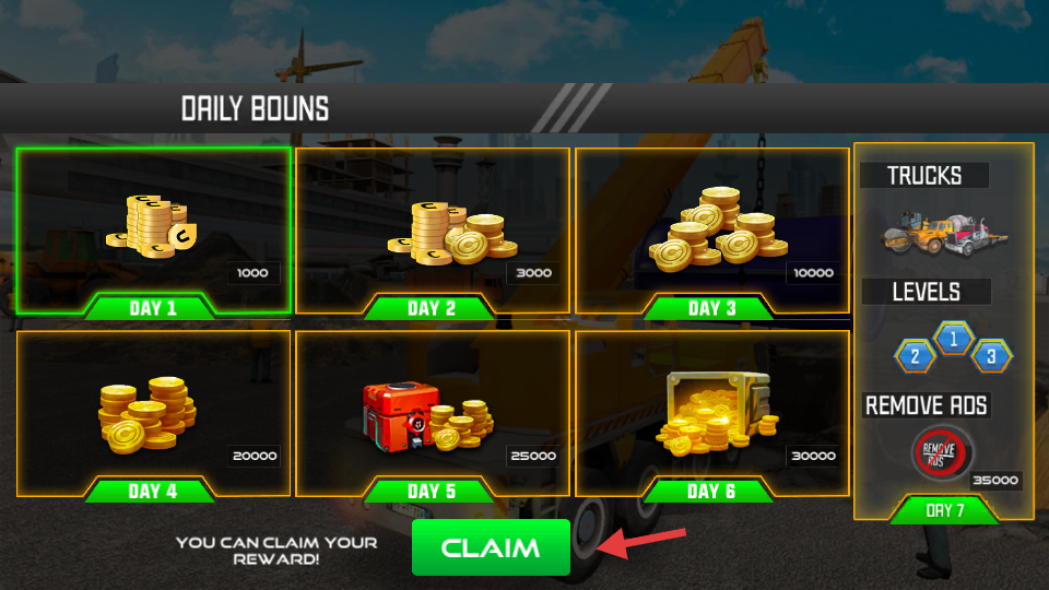 1、进入【DAILY-BOUNS】界面,点击绿色【CLAIM】按钮领取当日奖励,累计多日奖励提升资源。