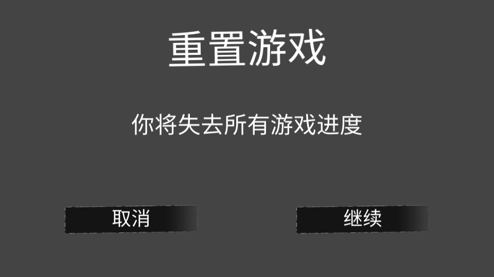 2、若选择重置游戏,确认【重置游戏-你将失去所有游戏进度】,谨慎操作,避免误删进度。