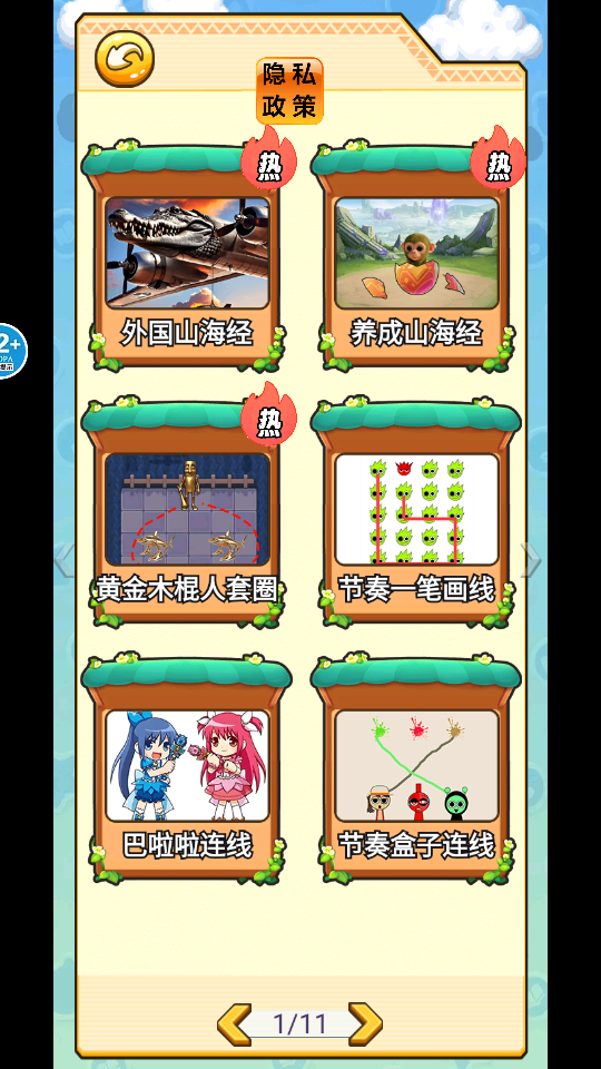 3、滑动查看更多游戏,如【外国山海经】【养成山海经】【黄金木棍人套圈】等,探索多样内容,丰富游戏体验。