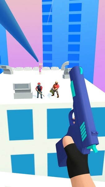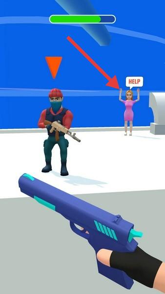 1、面对持武器敌人,瞄准射击,解救后方【HELP】的人质,注意躲避敌人攻击。