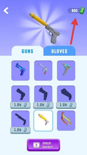 3、进入武器界面,消耗800金币,解锁新武器(如黄色枪械),提升火力,增强战斗能力。
