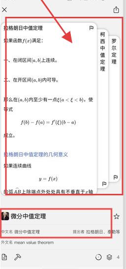 1、打开应用,在知识浏览页,点击【拉格朗日中值定理】词条,进入学习环节。