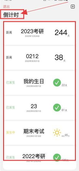 2、切换到倒计时界面,点击【倒计时】添加重大事件倒计时。