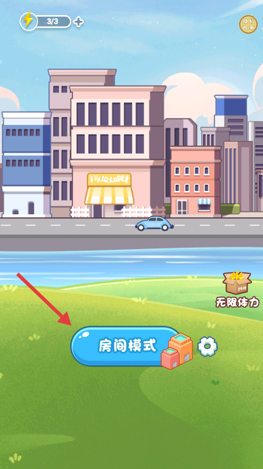2、在第二张图,选择【房间模式】,可利用【无限体力】(2小时),开始房间相关玩法。