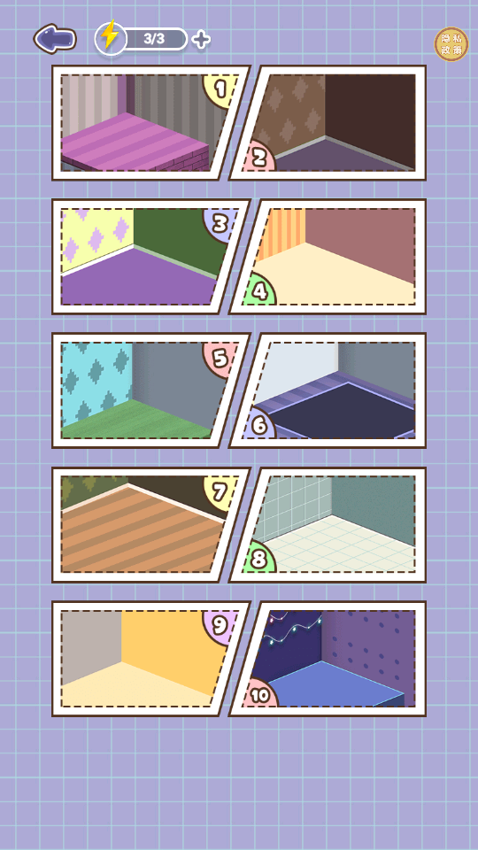 3、第三张图中,选择不同编号(1-10)的房间样式,按喜好装饰房间,体验房间设计乐趣。