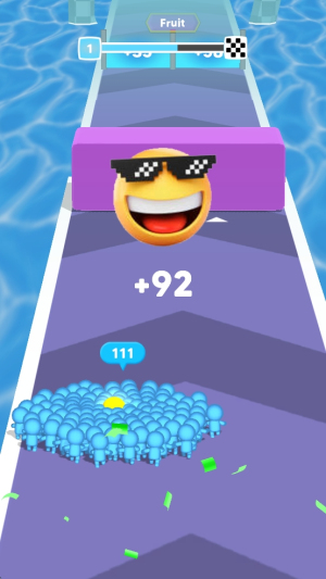 1、控制角色移动:通过拖动角色来左右移动,以收集赛道上的道具和分数。