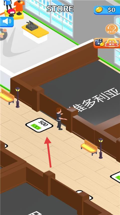 1、在【STORE】界面,点击地面【500】美元标识,建设店铺,积累初始资金,开启商店经营。