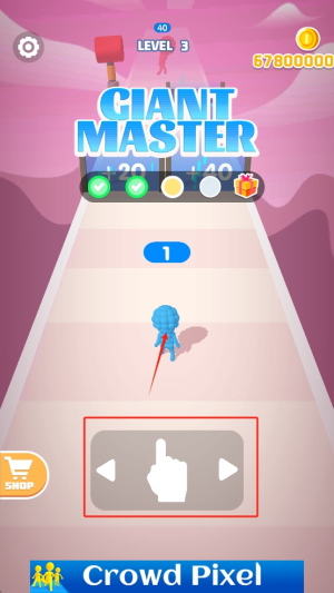 2、操控巨人移动:通过滑动屏幕或虚拟按键,控制巨人左右移动、跳跃,在赛道上快速前进。