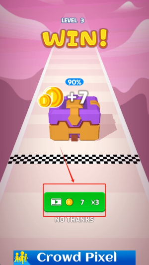 3、完成关卡:通过点击屏幕控制角色前进,收集金币,到达终点以完成关卡。