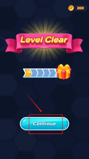 3、完成关卡:成功填满整个板子后,点击“Continue”继续下一关。