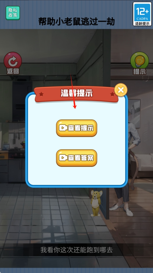 3、在游戏过程中,遇到难题时点击“提示”按钮,获取游戏提示或答案,帮助顺利通过关卡,继续冒险。