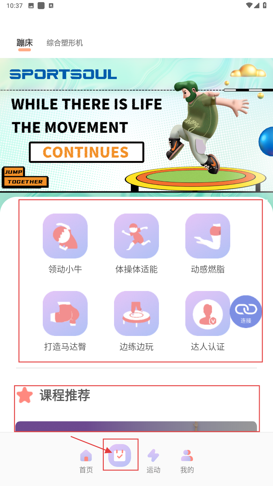 2、切换到【课程】界面,选择运动项目(领动小牛、体操体适能等),开启课程浏览操作。