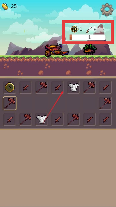 3、战斗时,关注角色防御值(盾牌旁数字)变化,合理切换装备,积累金币(击败敌人获取)升级或购买更强装备。