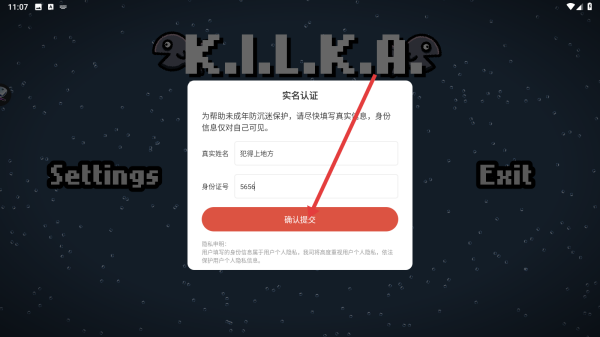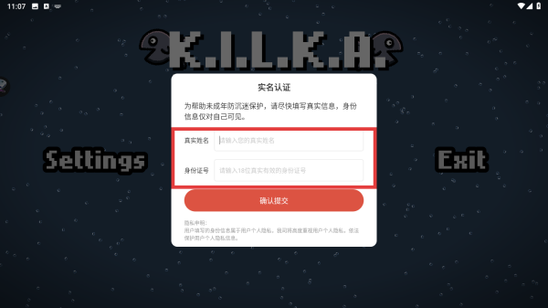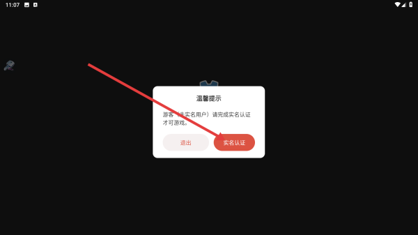 1、进入游戏,点击【实名认证】。