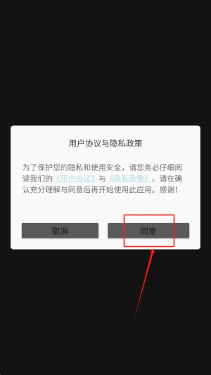1、接受协议:点击“同意”按钮,接受用户协议与隐私政策,以开始使用应用。