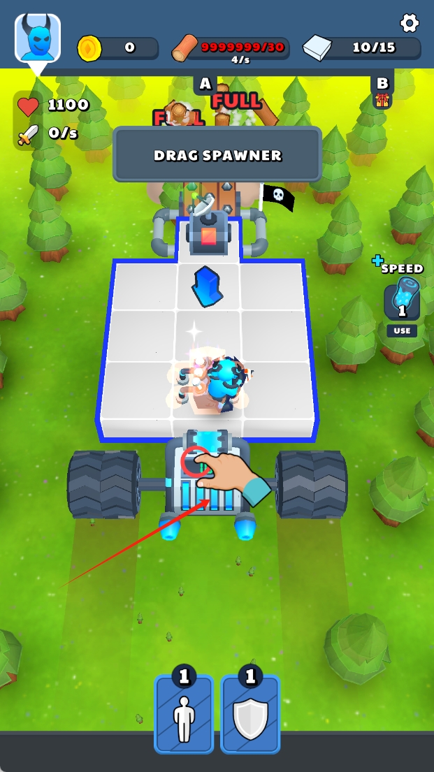 2、点击生成器图标,拖动到地图上合适的位置,生成单位协助防御,增强防御力量。