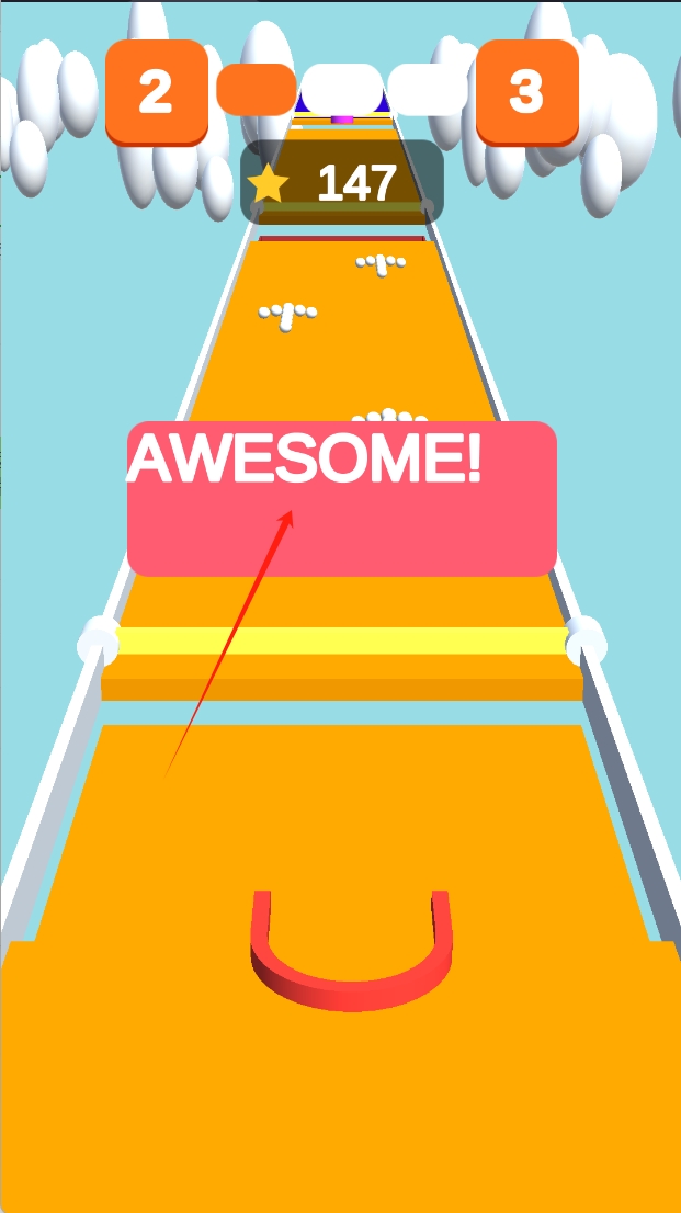 2、在滑道上收集方块,达到指定数量,完成关卡,获得奖励和星星评价。