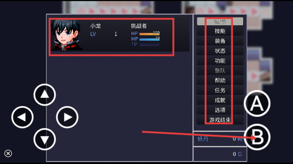 1、使用方向键控制角色小龙移动,按“键盘Z”或“虚拟键A”进行对话交互。
