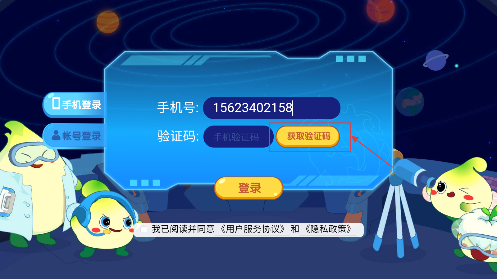 1、打开应用,填写手机号。
