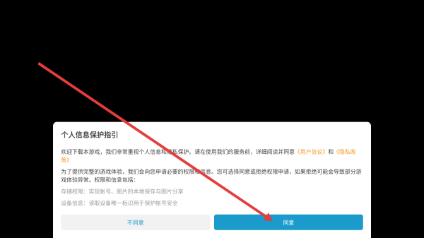 1、进入游戏,点击【同意】。