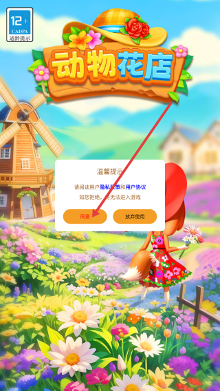 1、进入游戏,点击【同意】。