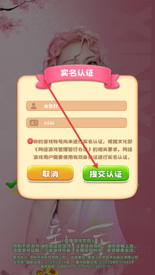 3、点击【提交认证】,即可开始游戏。