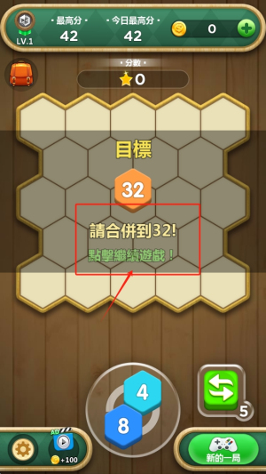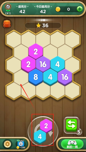 1、开启合成挑战:进入游戏,观察六边形数字块分布,思考最佳拼接位置。