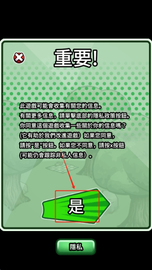 1、同意隐私政策:在游戏开始前,阅读并点击“是”按钮,同意游戏的隐私政策。