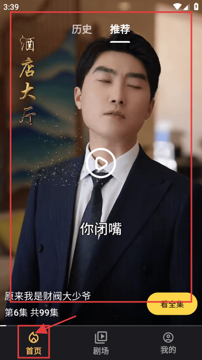 1、在【首页】看推荐短剧(如《原来我是财阀大少爷》)。